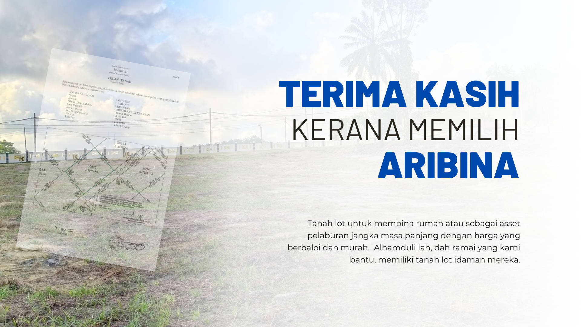 Boleh tiada masalah, hubungi kami dan set tarikh dan masa dengan team Aribina untuk ke lokasi tanah.